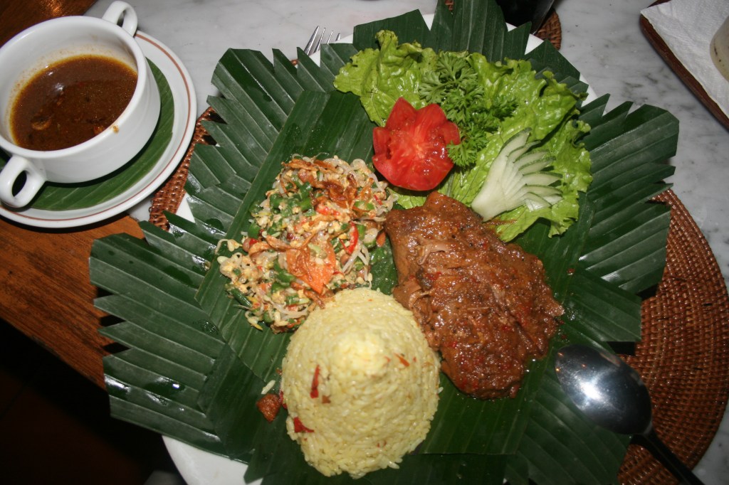 Ẩm thực tại Bali khá ngon. Sau 10 năm vẫn còn nhớ đến vị thịt heo quay với thảo mộc và vịt nướng tại một nhà hàng sâu trong rừng, bên cạnh một vực sâu – khi mà đang ăn luôn nghĩ về câu chuyện có khi nào không đủ trả tiền thì nhân viên nhà hàng sẽ đạp mình xuống vực sâu và thủ tiêu giấu xác.